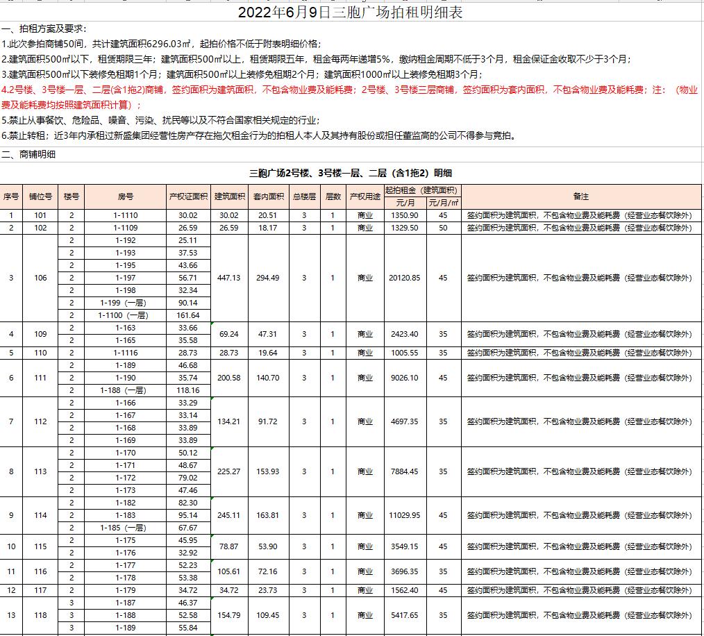原承租人享有同等條件優(yōu)先權。近3年內(nèi)曾經(jīng)違約的競買人,承租過新盛集團經(jīng)營性房產(chǎn),存在拖欠租金及轉租行為的承租人及其持有股份或擔任董監(jiān)高的公司不得參與競拍。