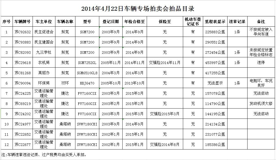 車輛專場(chǎng)拍賣公告