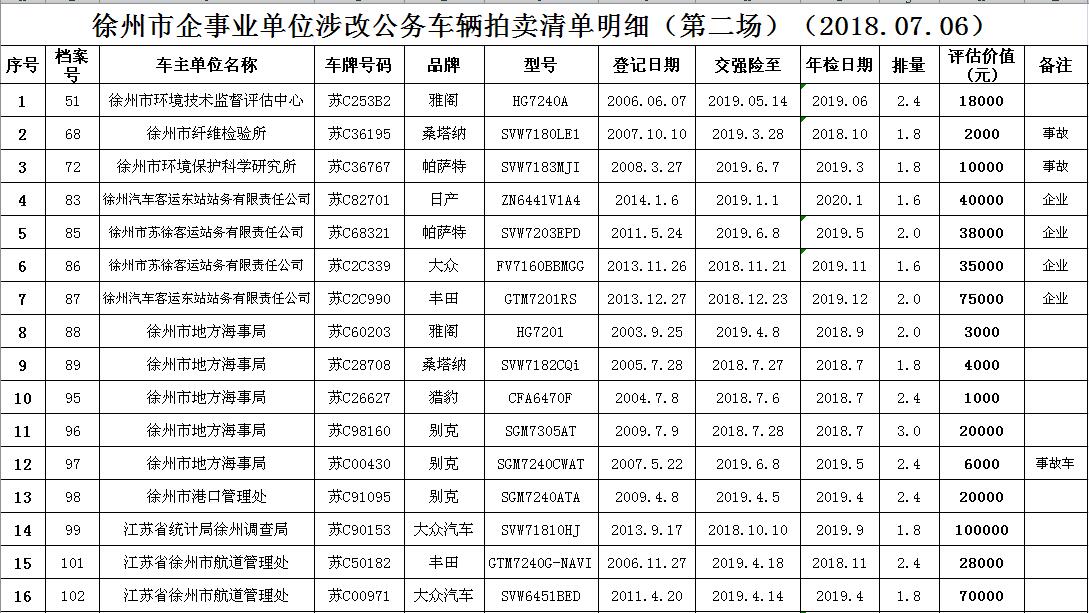 一、拍賣標(biāo)的:徐州市企事業(yè)單位改革公務(wù)車輛(詳見(jiàn)每期拍品目錄)。