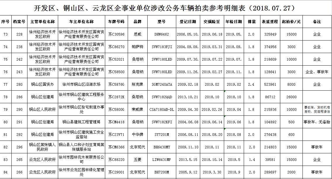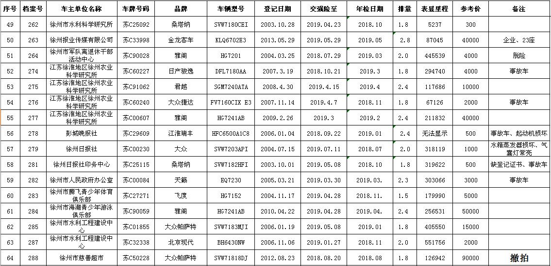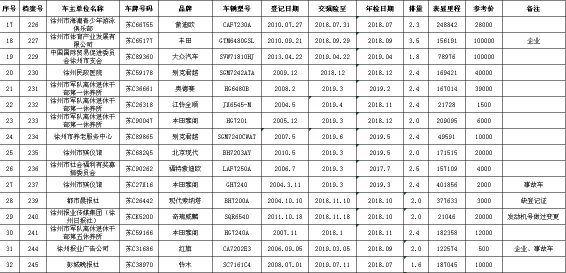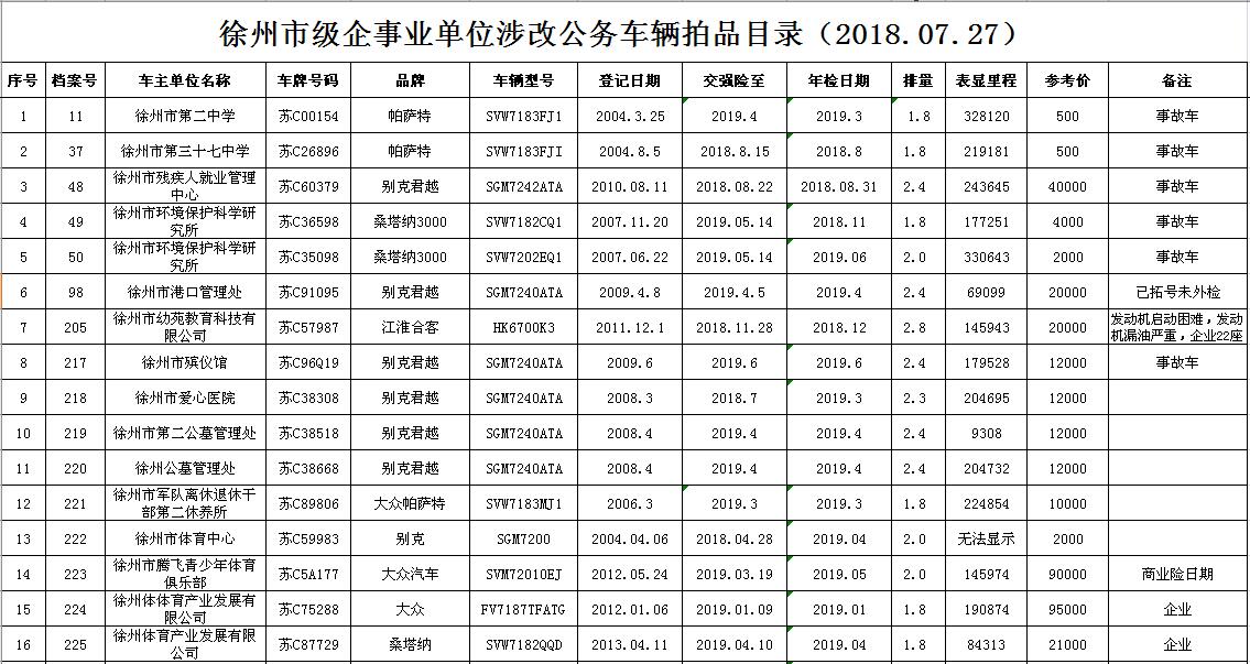 一、拍賣標(biāo)的:徐州市企事業(yè)單位改革公務(wù)車輛(詳見每期拍品目錄)。