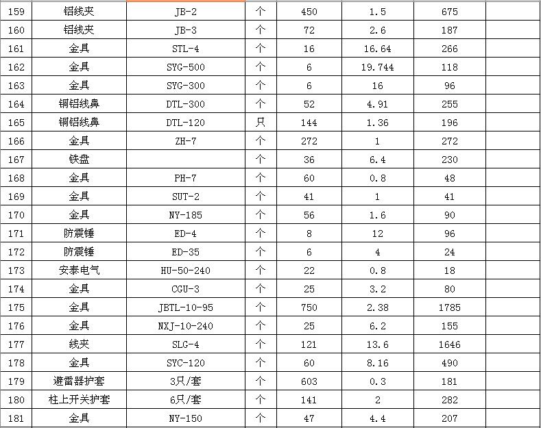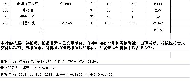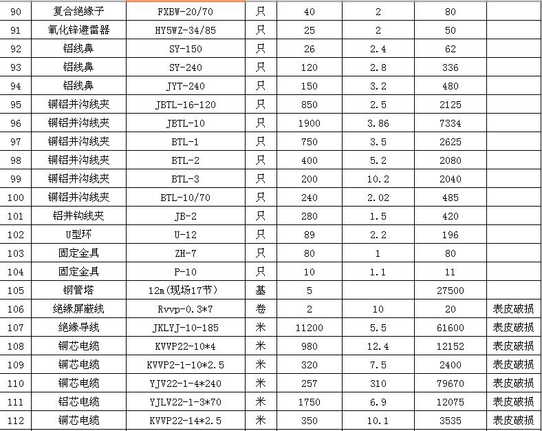 淮陰力源電力實(shí)業(yè)開發(fā)有限公司廢舊物資拍賣參考明細(xì)表