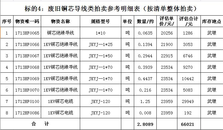 關注微信公眾號受淮安宏能集團有限公司委托,我公司將通過中國拍賣行業(yè)協(xié)會網(wǎng)絡拍賣平臺以網(wǎng)絡競價的方式公開拍賣以下廢舊物資,主要包括:高壓銅芯電纜、控制電纜、銅芯導線、鋁芯電纜、角鋼塔、鋼管塔等。
