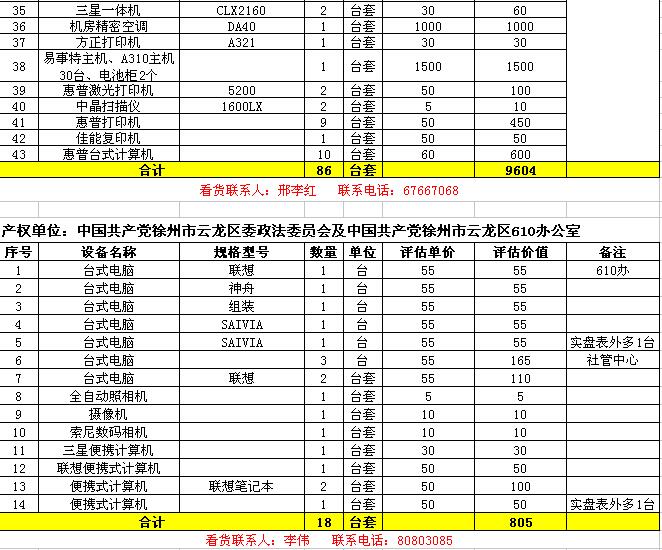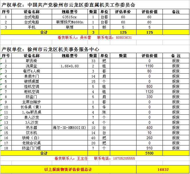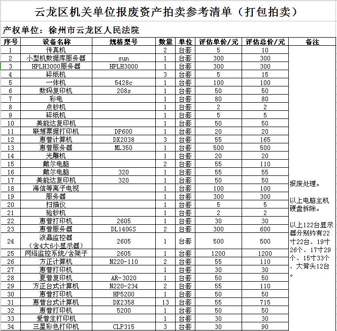 1. 云龍區(qū)數(shù)家單位廢舊辦公設(shè)備一批,主要包括:廢舊電腦、復印打印機、攝像機、空調(diào)、辦公家具等。