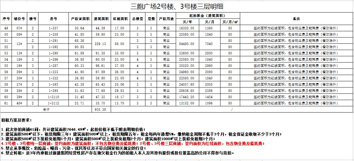 關(guān)注微信公眾號(hào)我公司受委托,定于2020年10月30日10時(shí)在徐州中山南路55號(hào)本公司三樓拍賣廳公開拍租:三胞廣場(chǎng)2號(hào)樓、3號(hào)樓1層、3層等部分商鋪及辦公房,面積分別約為數(shù)十至數(shù)百平米,租期3-5年。禁止從事危險(xiǎn)品、有污染及擾民的行業(yè)經(jīng)營(yíng)。