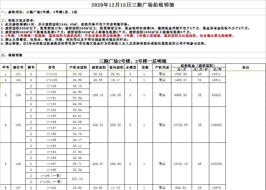 關(guān)注微信公眾號我公司受委托,定于2020年12月15日10時在徐州市中山南路55號三樓本公司拍賣廳公開拍租:新盛集團(tuán)位于三胞廣場商鋪及辦公房一批,面積分別為數(shù)十至數(shù)百平米不等,均為閑置。租期3-5年。禁止從事危險品、有污染及擾民的行業(yè)經(jīng)營。