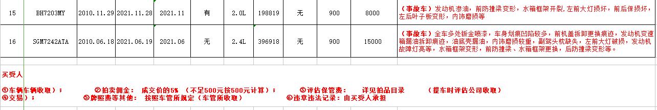 5月22日、24日在徐州銀地二手車(chē)交易市場(chǎng)展示。有意競(jìng)買(mǎi)者請(qǐng)持有效證件到我公司辦理報(bào)名手續(xù),并交納每輛車(chē)1萬(wàn)元保證金即可參拍,報(bào)名截止至5月24日16時(shí)。
